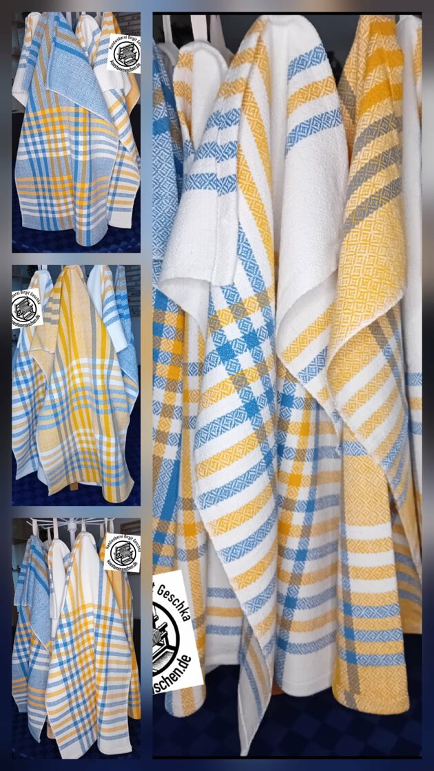 Hier die einzelnen Serien an Geschirrtüchern; Alle Farbkombinationen können bestellt werden. Der Preis liegt pro Geschirrtuch bei 25 Euro zzgl. 5 Euro versicherter Versand innerhalb Deutschlands. Andere Länder auf Anfrage.